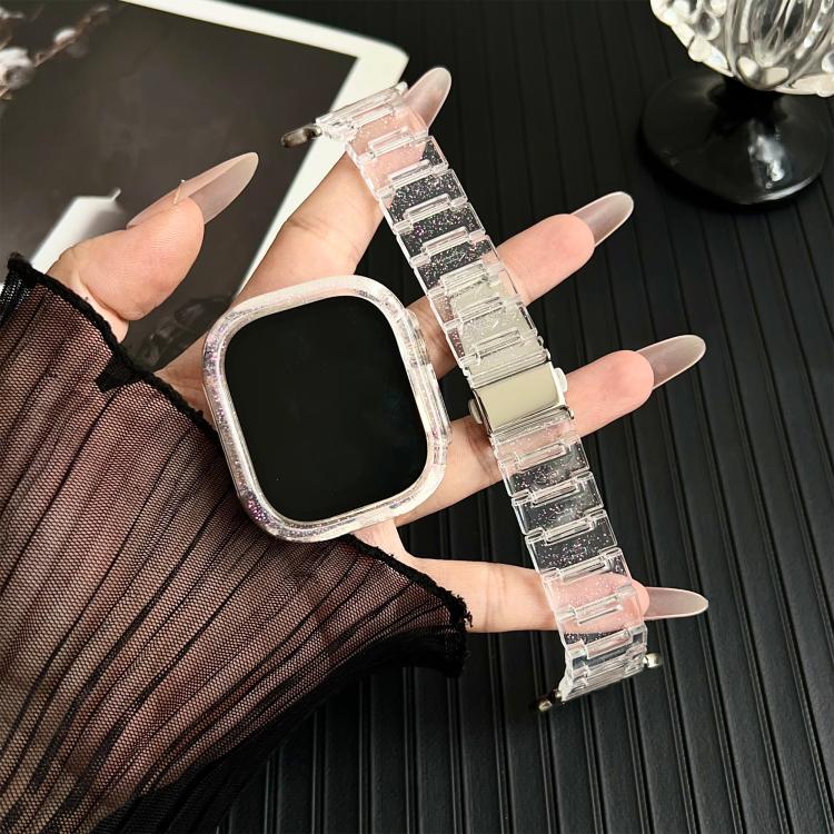 Correa de resina epoxi para Apple Watch de 44 mm/45 mm (color rosa cambiante) con carcasa de PC Chameleon