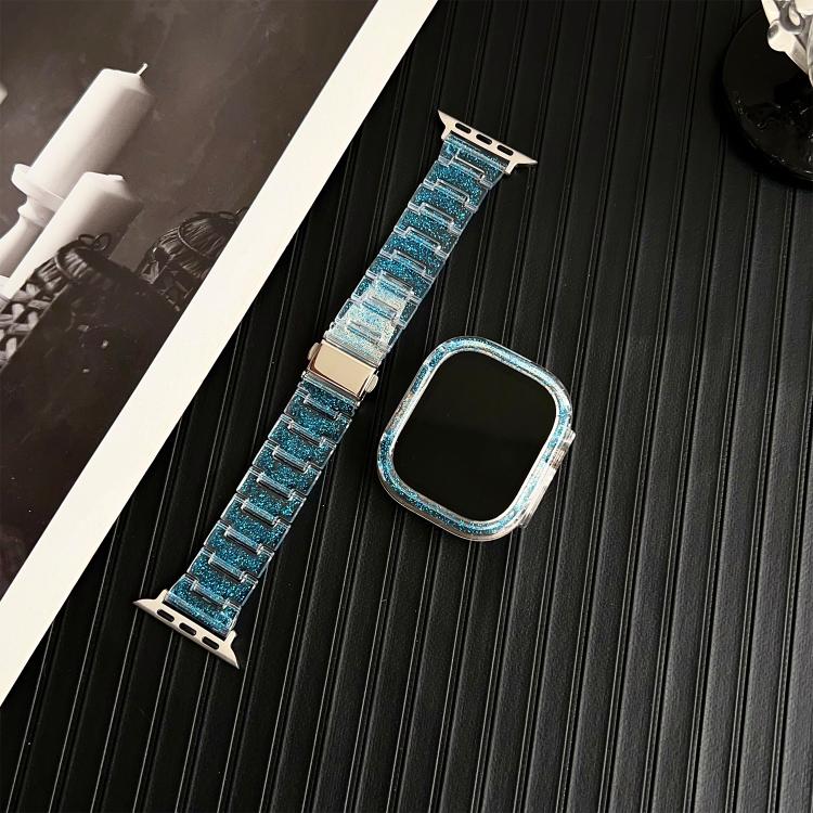 Correa de resina epoxi para Apple Watch Series 10 de 46 mm con carcasa de PC Chameleon (color azul cambiante)