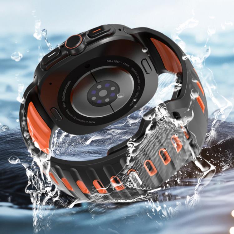 Correa de silicona bicolor a rayas para Samsung Galaxy Watch Ultra de 47 mm (negro y naranja)