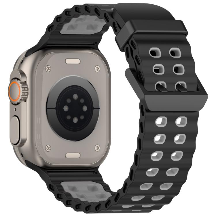Correa de silicona bicolor con doble fila de agujeros para Apple Watch de 46 mm, 49 mm, 45 mm y 44 mm (negro y gris)
