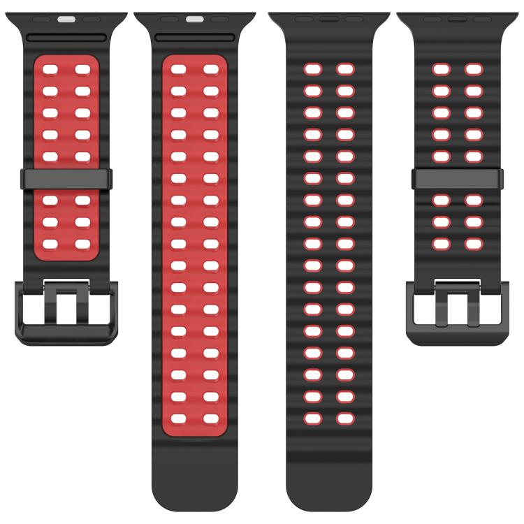 Correa de silicona bicolor con doble fila de agujeros para Apple Watch de 46 mm, 49 mm, 45 mm y 44 mm (negro y rojo)