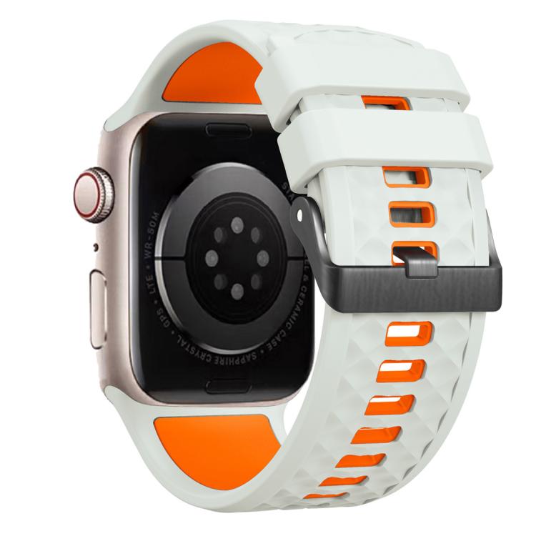 Correa de silicona bicolor con textura de diamante para Apple Watch de 46 mm, 49 mm, 45 mm y 44 mm (gris y naranja)