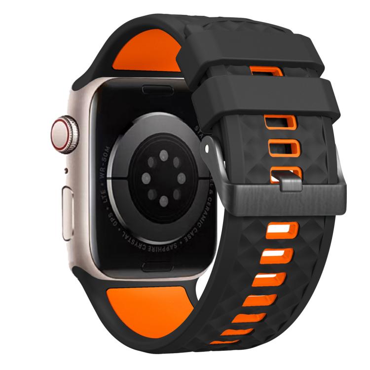 Correa de silicona bicolor con textura de diamante para Apple Watch de 46 mm, 49 mm, 45 mm y 44 mm (negro y naranja)