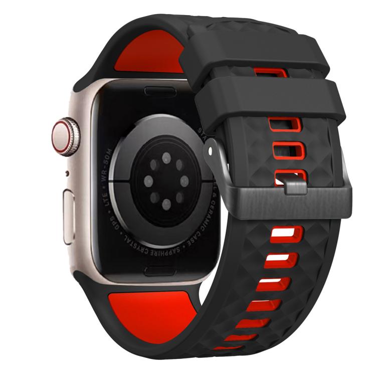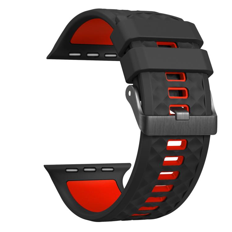 Correa de silicona bicolor con textura de diamante para Apple Watch de 46 mm, 49 mm, 45 mm y 44 mm (negro y rojo)