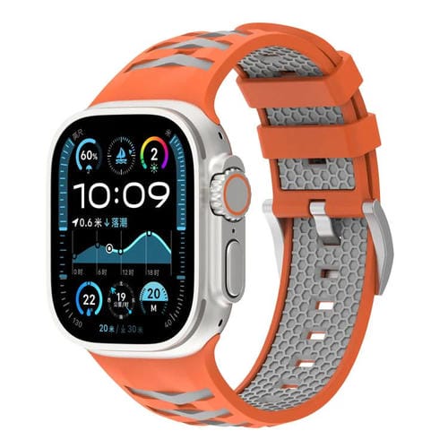 Correa de silicona bicolor con textura de neumático para Apple Watch de 42 mm, 41 mm, 40 mm y 38 mm (naranja y gris)