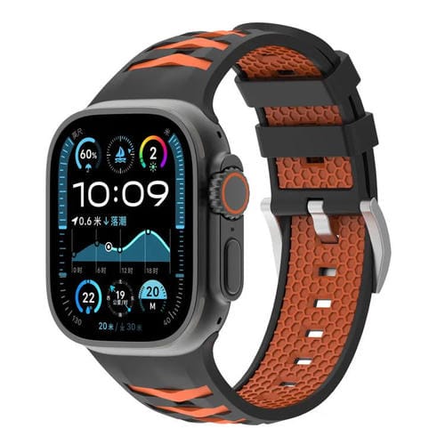 Correa de silicona bicolor con textura de neumático para Apple Watch de 46 mm, 49 mm, 45 mm y 44 mm (negro y naranja)
