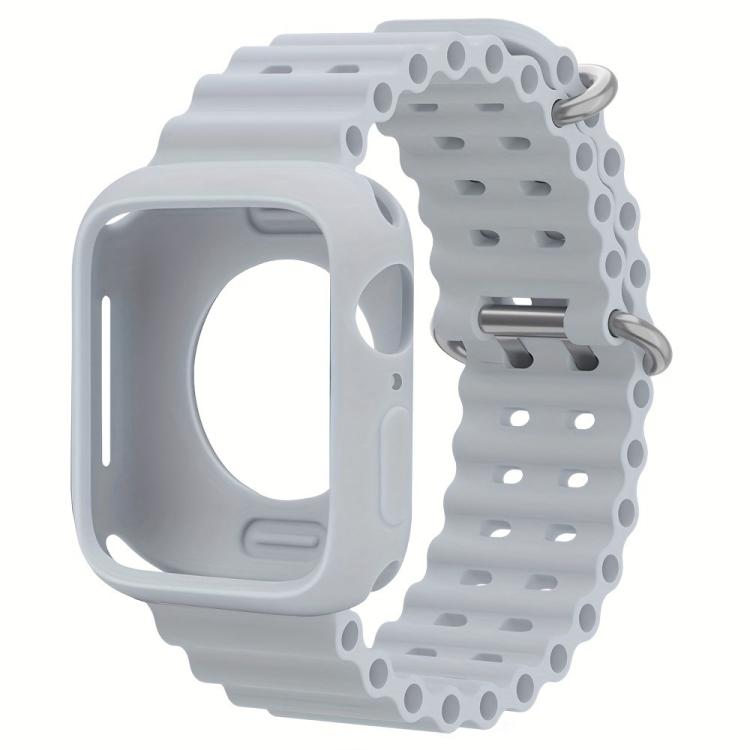 Correa de silicona color océano para Apple Watch Series 10/11 de 42 mm con funda de silicona (gris)