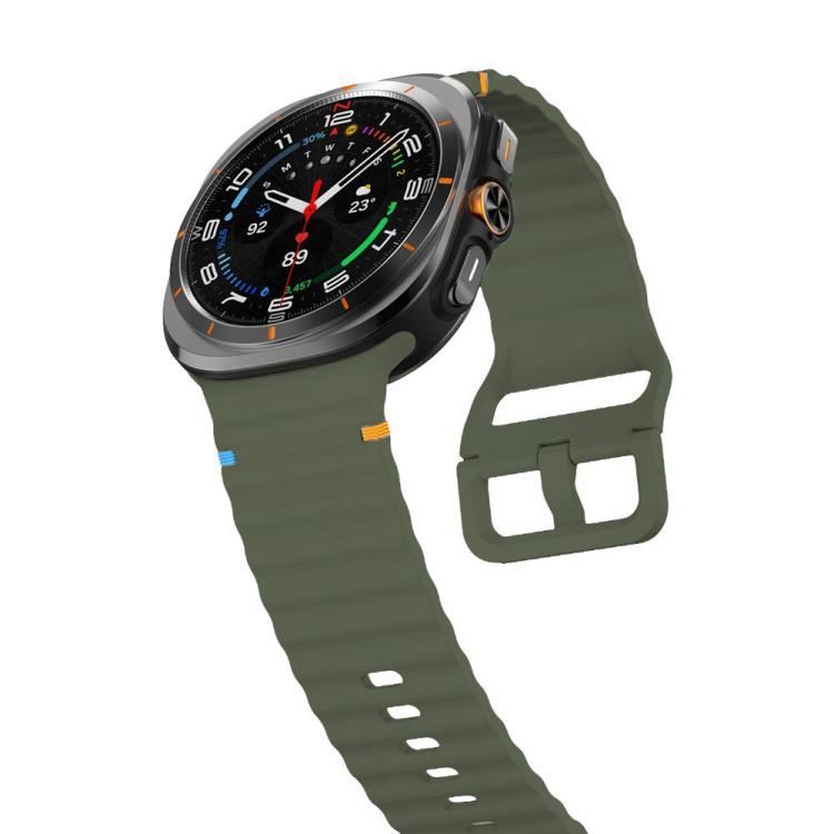 Correa de silicona con costuras onduladas para Samsung Galaxy Watch8 Classic de 46 mm, Watch8 de 44 mm y 40 mm, talla L (verde militar)