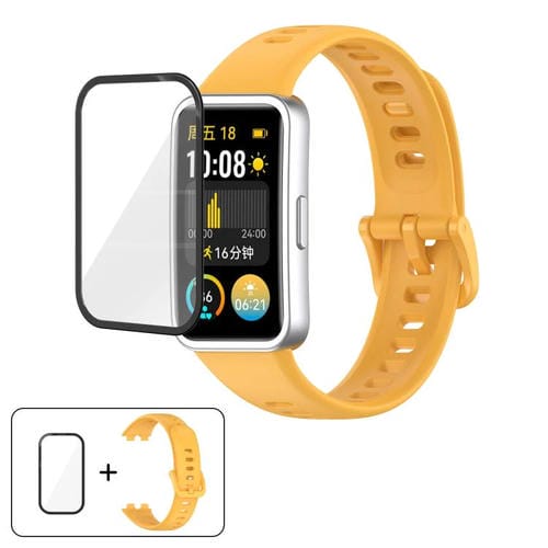Correa de silicona con hebilla colorida y película curva 3D para Huawei Band 8/8 NFC (amarilla)
