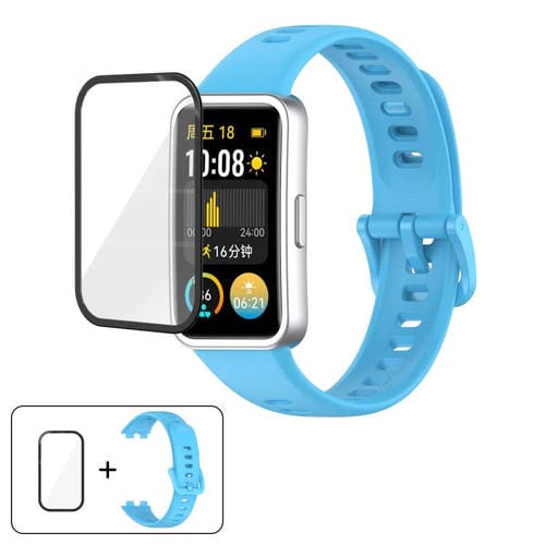 Correa de silicona con hebilla colorida y película curva 3D para Huawei Band 9/9 NFC (azul cielo)