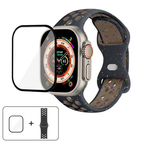 Correa de silicona con hebilla de mariposa y puntos de color para Apple Watch Ultra 2/1 de 49 mm con película curva 3D (cielo nocturno)