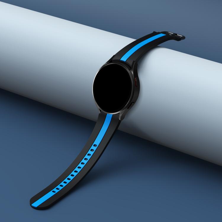 Correa de silicona con hebilla del mismo color y tres rayas verticales Kalebol para Samsung Galaxy Watch7/6/5 (negro y azul)
