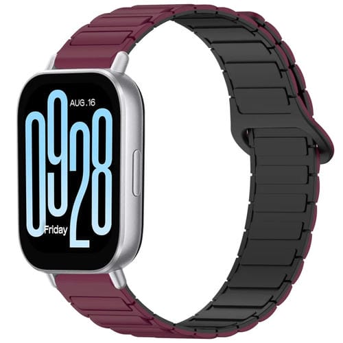 Correa de silicona con hebilla magnética de dos colores para Redmi Watch 5 Active (vino tinto y negro)