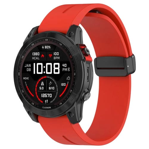 Correa de Silicona con Hebilla Negra Plegable Magnética para Reloj Garmin Fenix 7S (Roja)