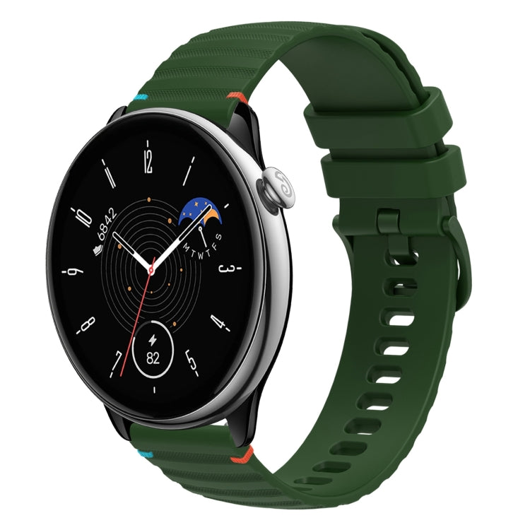 Correa de Silicona con Puntadas Onduladas y Puntos para Reloj Amazfit GTR Mini 20mm (Verde Militar)