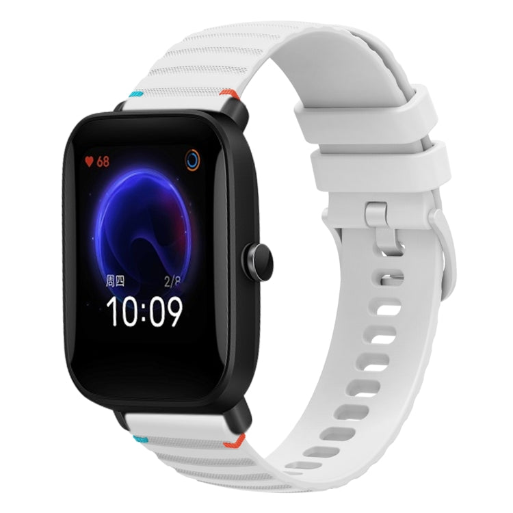 Correa de Silicona para Reloj Amazfit Pop 20mm con Puntadas Onduladas y Puntos (Blanca)