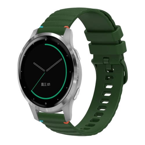 Correa de Silicona Garmin Active S 18mm con Puntadas Onduladas y Puntos (Verde Militar)