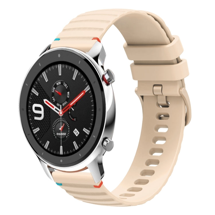 Correa de Silicona 22mm para Reloj Amazfit GTR 4 con Puntadas Onduladas y Puntos (Crema)
