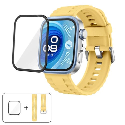 Correa de silicona de color sólido con película curva 3D para Huawei Watch Fit 3 (amarilla)