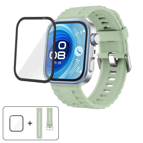 Correa de silicona de color sólido con película curva 3D para Huawei Watch Fit 3 (verde)