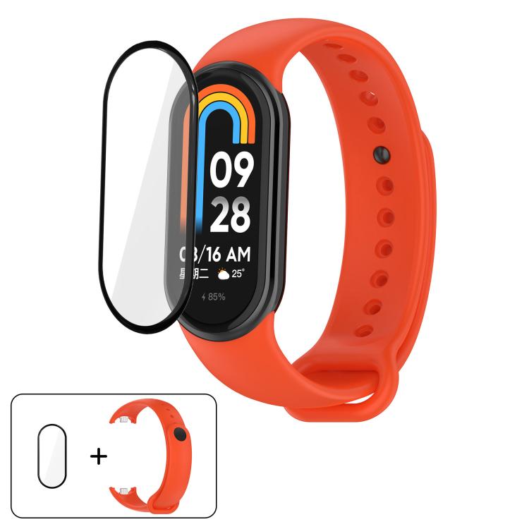 Correa de silicona de color sólido con película curva 3D para Xiaomi Smart Band 10/10 NFC (naranja)