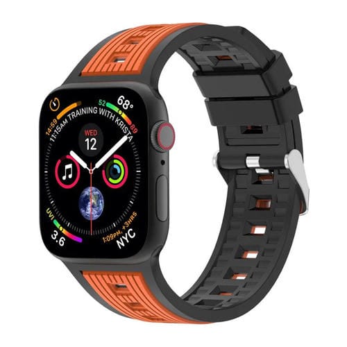 Correa de silicona de rayas verticales bicolor para Apple Watch de 42 mm, 41 mm, 40 mm y 38 mm (negro y naranja)