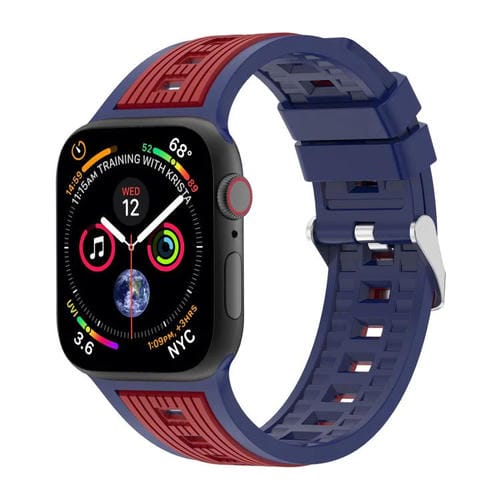 Correa de silicona de rayas verticales bicolor para Apple Watch de 46 mm, 49 mm, 45 mm y 44 mm (azul marino y burdeos)