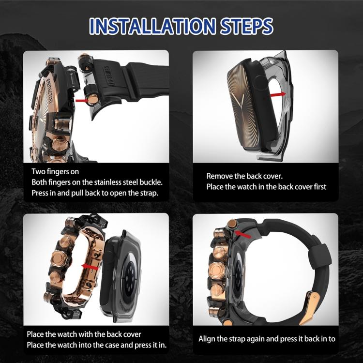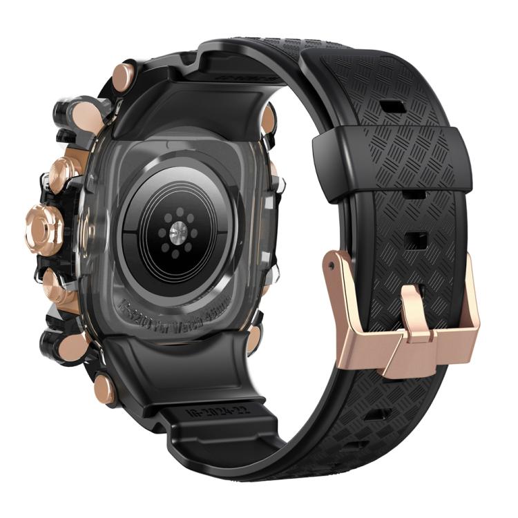 Correa de silicona integrada para Apple Watch Series 10/11 de 46 mm con caja metálica (negro transparente + dorado).