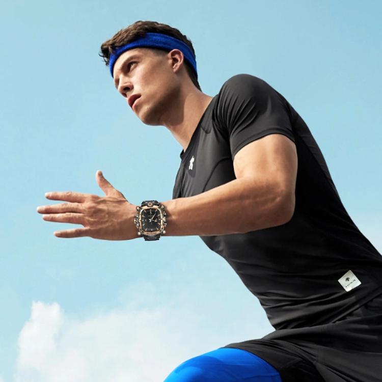 1. Material: Carcasa de PC y metal, y correa de silicona; ajuste perfecto.