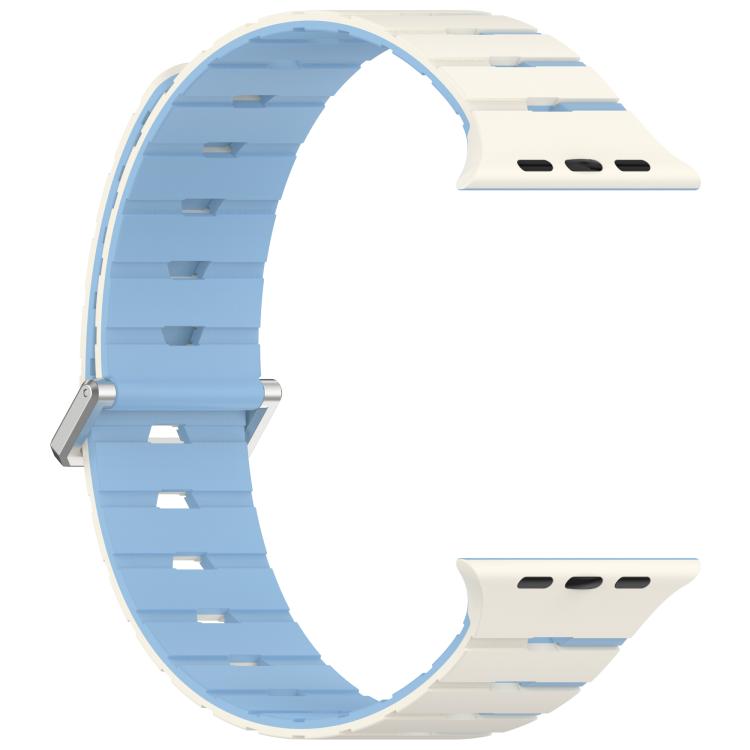 Correa de silicona magnética bicolor estilo melódica para Apple Watch de 42 mm / 41 mm / 40 mm / 38 mm (blanco antiguo, azul niebla).