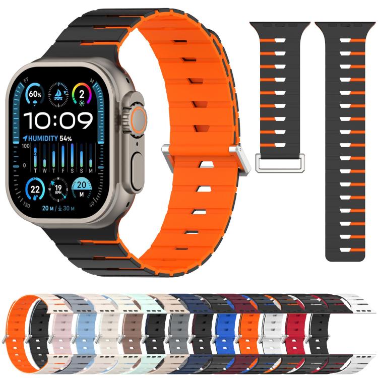 Correa de silicona magnética bicolor estilo melódica para Apple Watch de 42 mm / 41 mm / 40 mm / 38 mm (Gris obsidiana, negro).