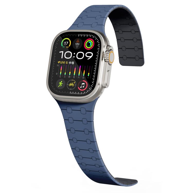 Correa de silicona magnética con colores contrastantes para Apple Watch de 42, 44, 45, 46 y 49 mm (azul y medianoche)
