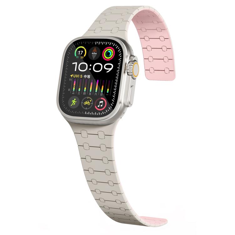 Correa de silicona magnética con colores contrastantes para Apple Watch de 42, 44, 45, 46 y 49 mm (luz de estrella y rosa)
