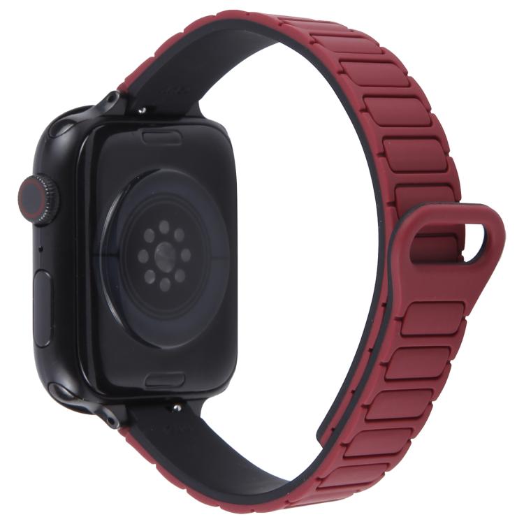 Correa de silicona magnética delgada en forma de I para Apple Watch de 46 mm, 49 mm, 45 mm y 44 mm (negro y rojo vino)