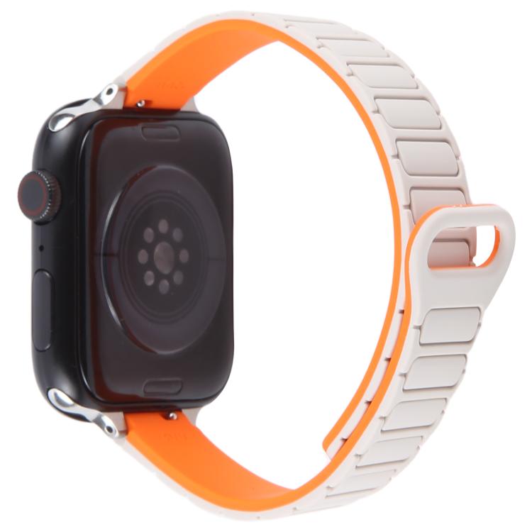 Correa de silicona magnética delgada en forma de I para Apple Watch de 46 mm, 49 mm, 45 mm y 44 mm (plata y naranja estrellado)