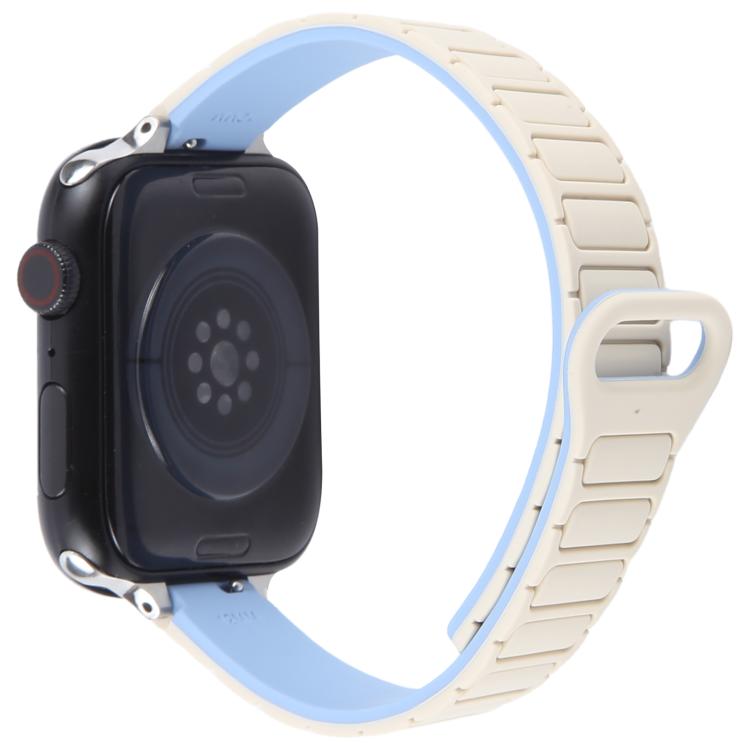 Correa de silicona magnética delgada en forma de I para Apple Watch de 46 mm, 49 mm, 45 mm y 44 mm (plateada y azul y blanca)