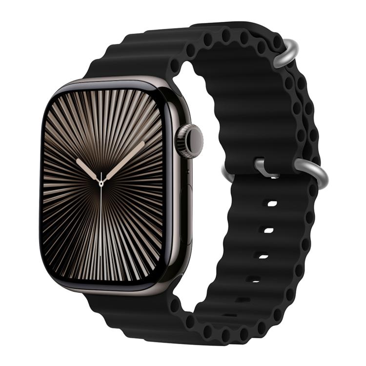 Correa de silicona Ocean para Apple Watch Series 10 de 42 mm con película curva 3D (negra)
