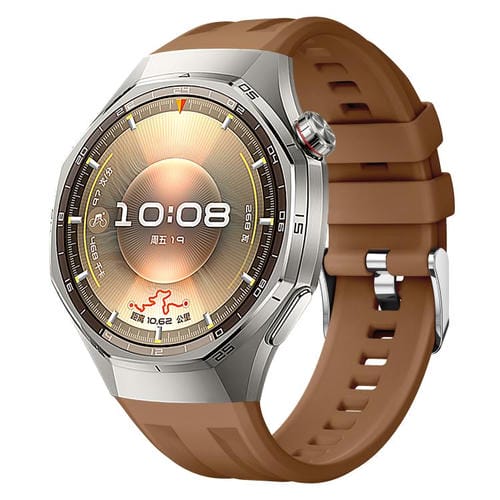 Correa de silicona para Huawei Watch GT 6 Pro con hebilla de acero plateado y color sólido (marrón)