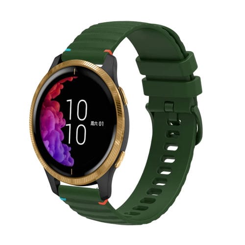 Correa de Silicona Garmin Venu 20mm con Puntadas Onduladas y Puntos (Verde Militar)