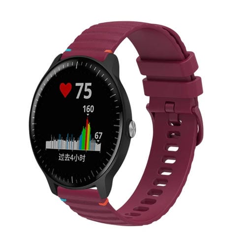 Correa de Silicona Garmin Vivoactive 3 Music 20mm con Puntadas Onduladas (Rojo Vino)