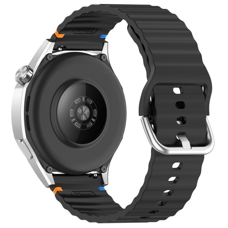 Correa de silicona para reloj Samsung Galaxy Watch 3 de 45 mm con costuras onduladas de 22 mm (negra)