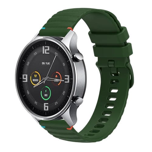 Correa de silicona para reloj Xiaomi de 22 mm con costuras punteadas y color verde militar