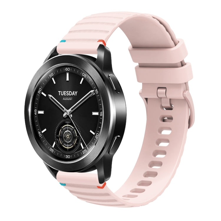 Correa de silicona para reloj Xiaomi Watch S3 con puntadas onduladas y puntos de 22 mm (rosa)