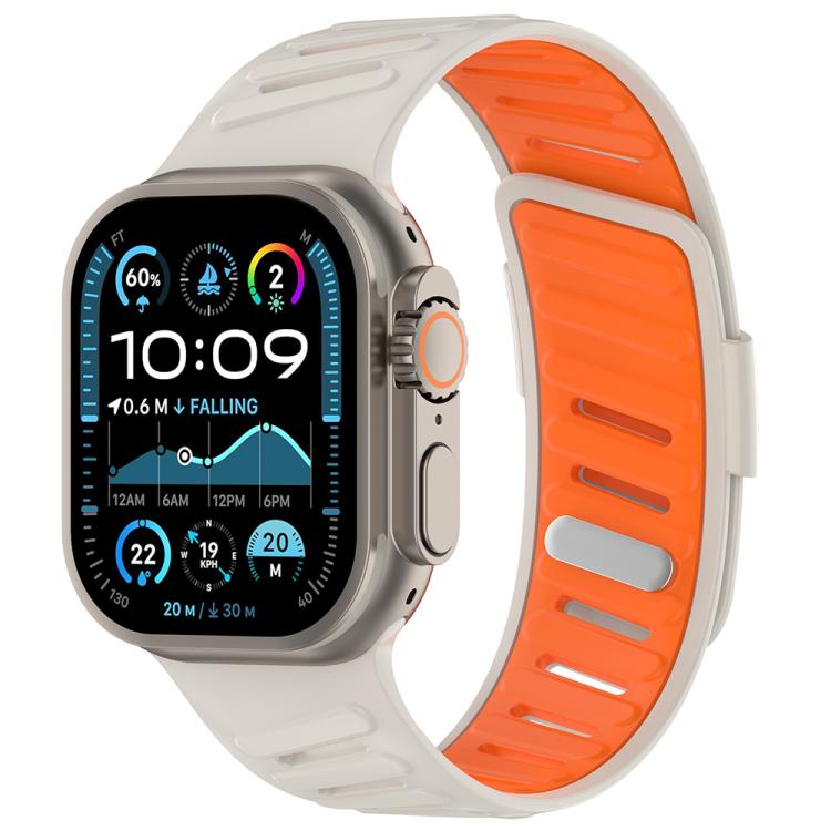 Correa de silicona transpirable bicolor con hebilla oblicua para Apple Watch de 46 mm, 49 mm, 45 mm y 44 mm (naranja estrellado)