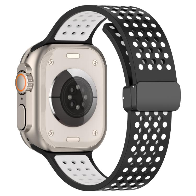 Correa de silicona transpirable con hebilla magnética para Apple Watch de 46 mm, 49 mm, 45 mm y 44 mm (negro y blanco)