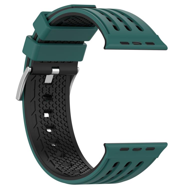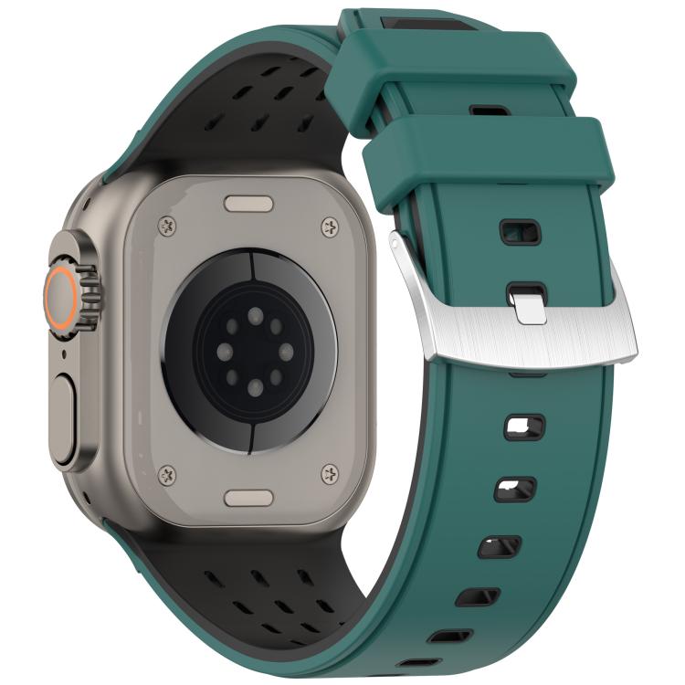 Correa de silicona transpirable de dos colores con agujeros verticales para Apple Watch de 46 mm, 49 mm, 45 mm y 44 mm (agujas de pino verde)