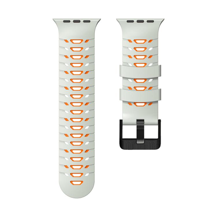 Correa de silicona trapezoidal de dos colores para Apple Watch de 46 mm, 49 mm, 45 mm y 44 mm (gris niebla y naranja)