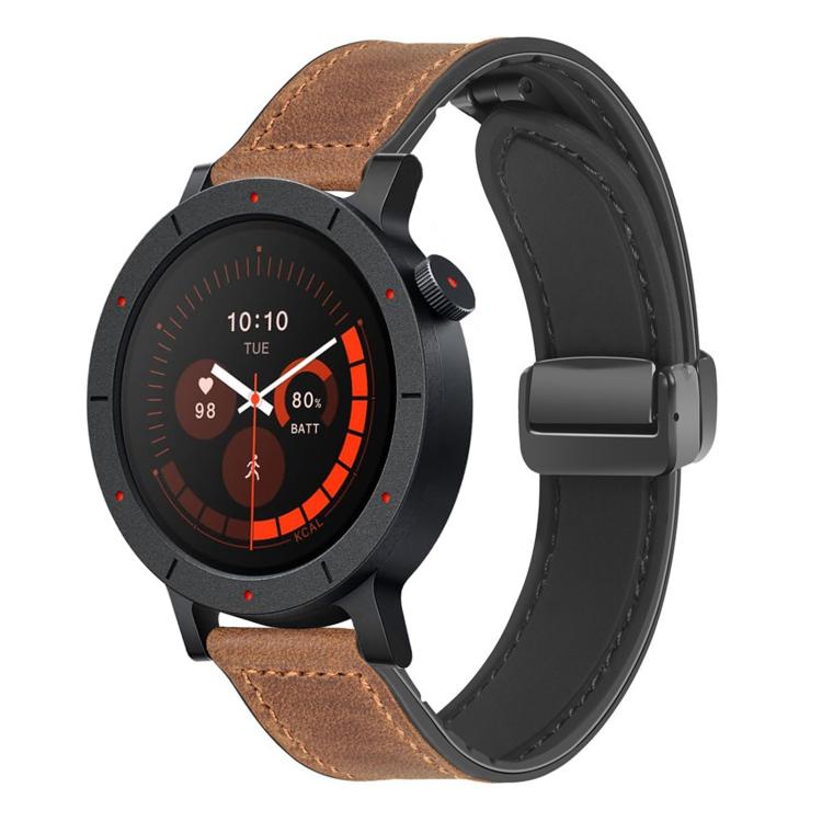 Correa de silicona y cuero con hebilla magnética plegable para CMF Watch 3 Pro (patrón Crazy Horse, marrón oscuro)