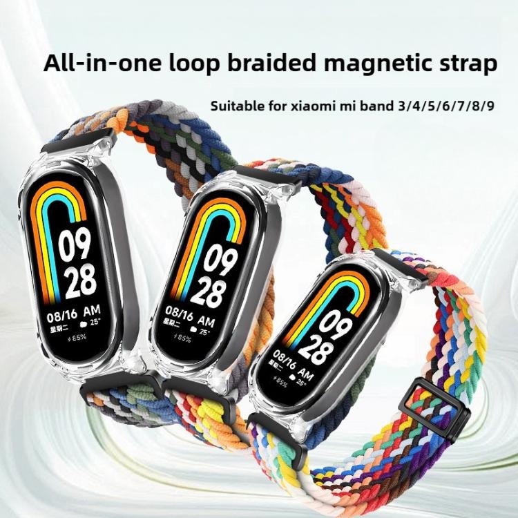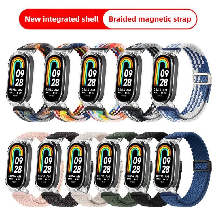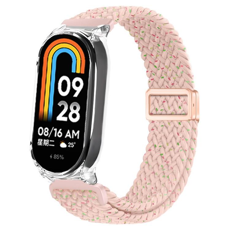 Correa elástica trenzada de nailon con hebilla magnética y marco de policarbonato transparente para Xiaomi Smart Band 9/8 (rosa estrella)
