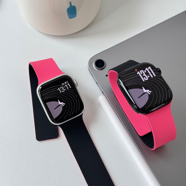 Correa magnética de silicona bicolor con textura de lichi para Apple Watch de 42 mm / 41 mm / 40 mm / 38 mm (Peonía negra)